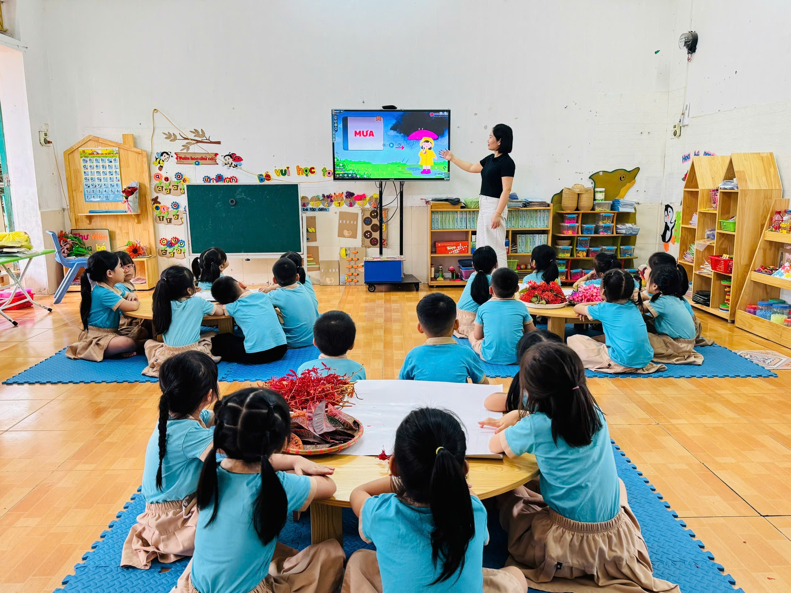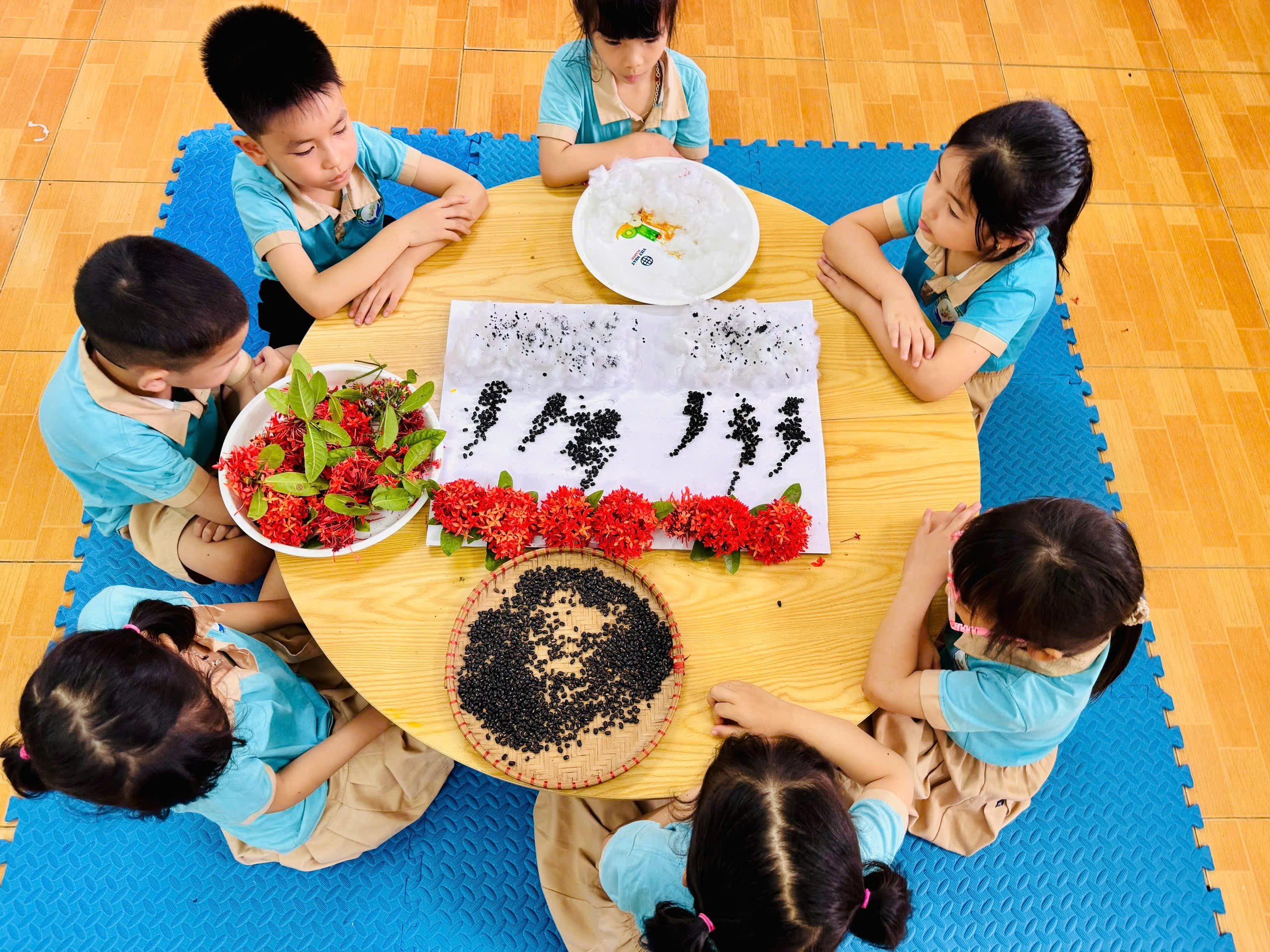 Hoạt động tạo hình làm tranh về các hiện tượng tự nhiên từ những nguyên liệu sẵn có trong thiên nhiên là một trải nghiệm giàu ý nghĩa, kết hợp hài hòa giữa nghệ thuật, giáo dục và cảm xúc. Từ những chiếc lá khô, cành cây nhỏ, hạt giống, sỏi đá hay cát đất tưởng chừng giản dị, trẻ có thể tái hiện sinh động các hiện tượng như mưa rơi, cầu vồng, gió thổi hay bầu trời đầy mây. Quá trình ấy không chỉ khơi gợi trí tưởng tượng phong phú mà còn giúp mỗi người quan sát tinh tế hơn sự biến đổi kỳ diệu của tự nhiên xung quanh.