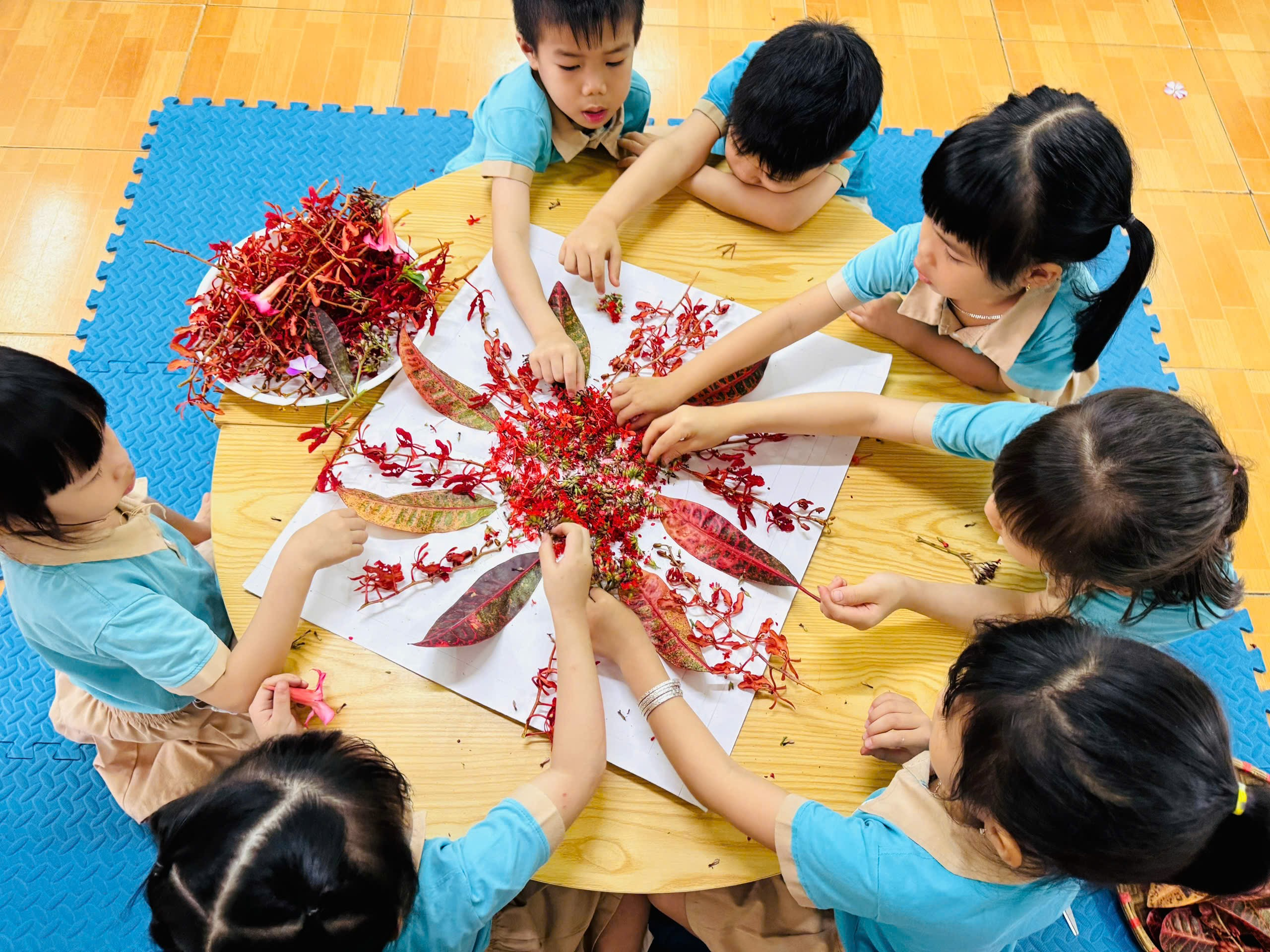 Ảnh: Trẻ sáng tạo ông mặt trời từ hoa và lá cây