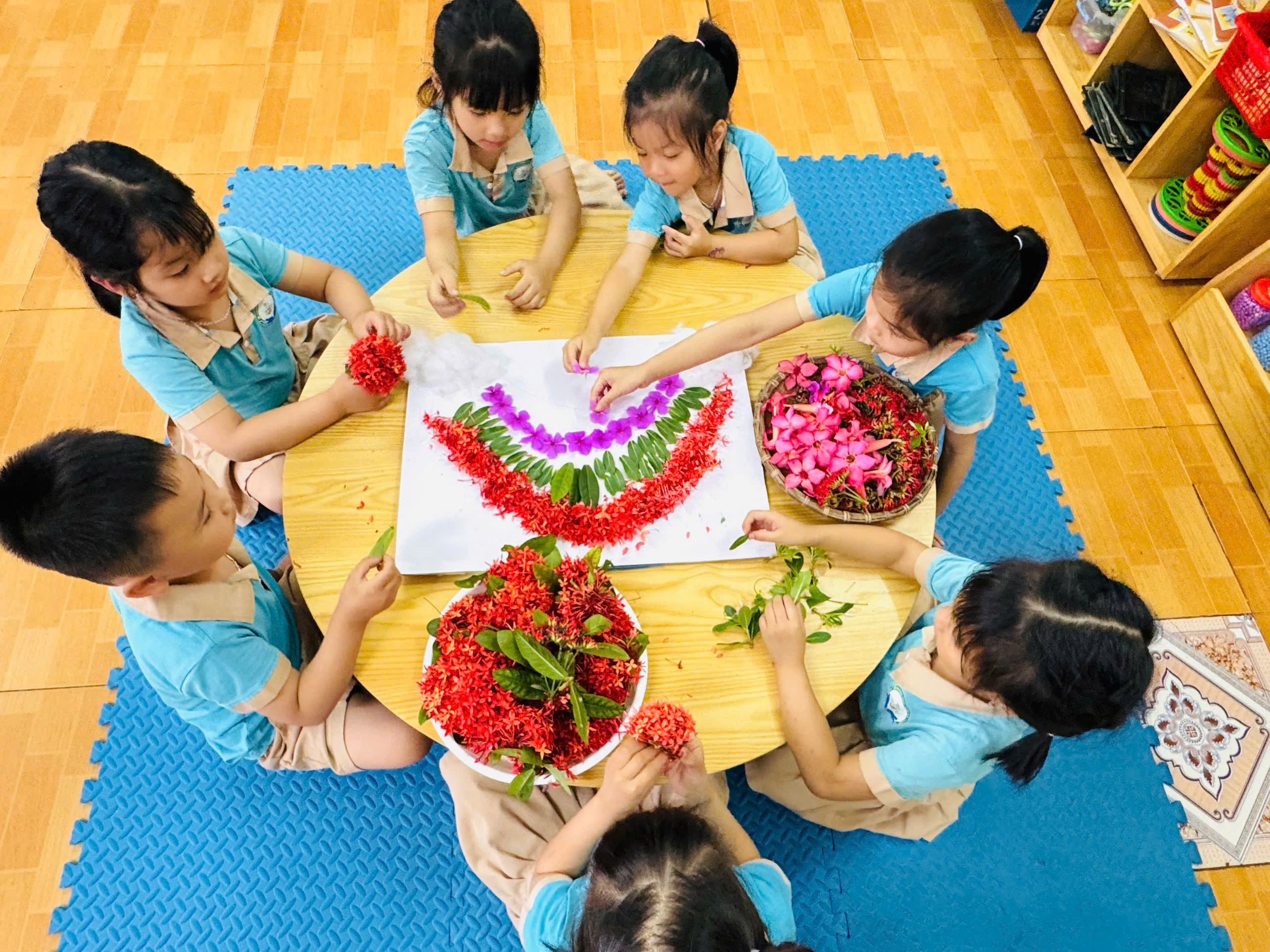 Hơn thế nữa, hoạt động tạo hình này còn tạo nên những khoảnh khắc thư giãn, gắn kết và nuôi dưỡng cảm xúc tích cực. Khi hòa mình vào thiên nhiên, chạm vào từng chất liệu mộc mạc và thổi hồn vào từng bức tranh, mỗi người như tìm lại được sự bình yên, đồng thời nuôi dưỡng tình yêu thiên nhiên một cách nhẹ nhàng mà sâu sắc. Đây chính là nền tảng quan trọng để hình thành nhân cách, lối sống hài hòa với môi trường và biết trân trọng những giá trị giản dị trong cuộc sống. Với đặc điểm lứa tuổi giàu trí tưởng tượng, việc tạo hình bằng nguyên liệu tự nhiên sẽ giúp trẻ được tự do thể hiện cảm xúc, suy nghĩ, từ đó nuôi dưỡng tâm hồn trong sáng và phát triển nhân cách một cách nhẹ nhàng, tự nhiên.