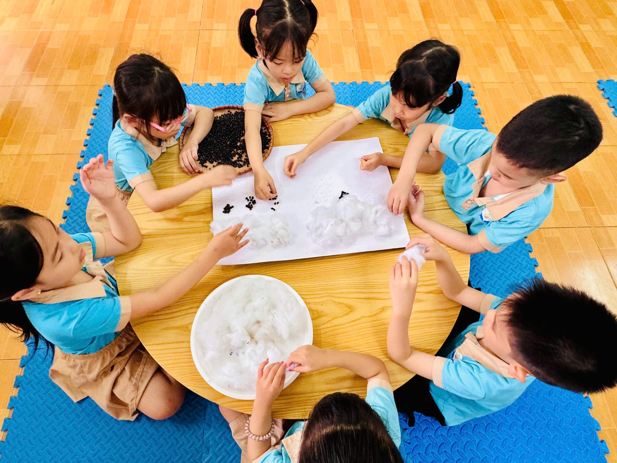 Các con lớp 5 Tuổi A “Làm tranh sáng tạo các hiện tượng thời tiết từ nguyên vật liệu tự nhiên”