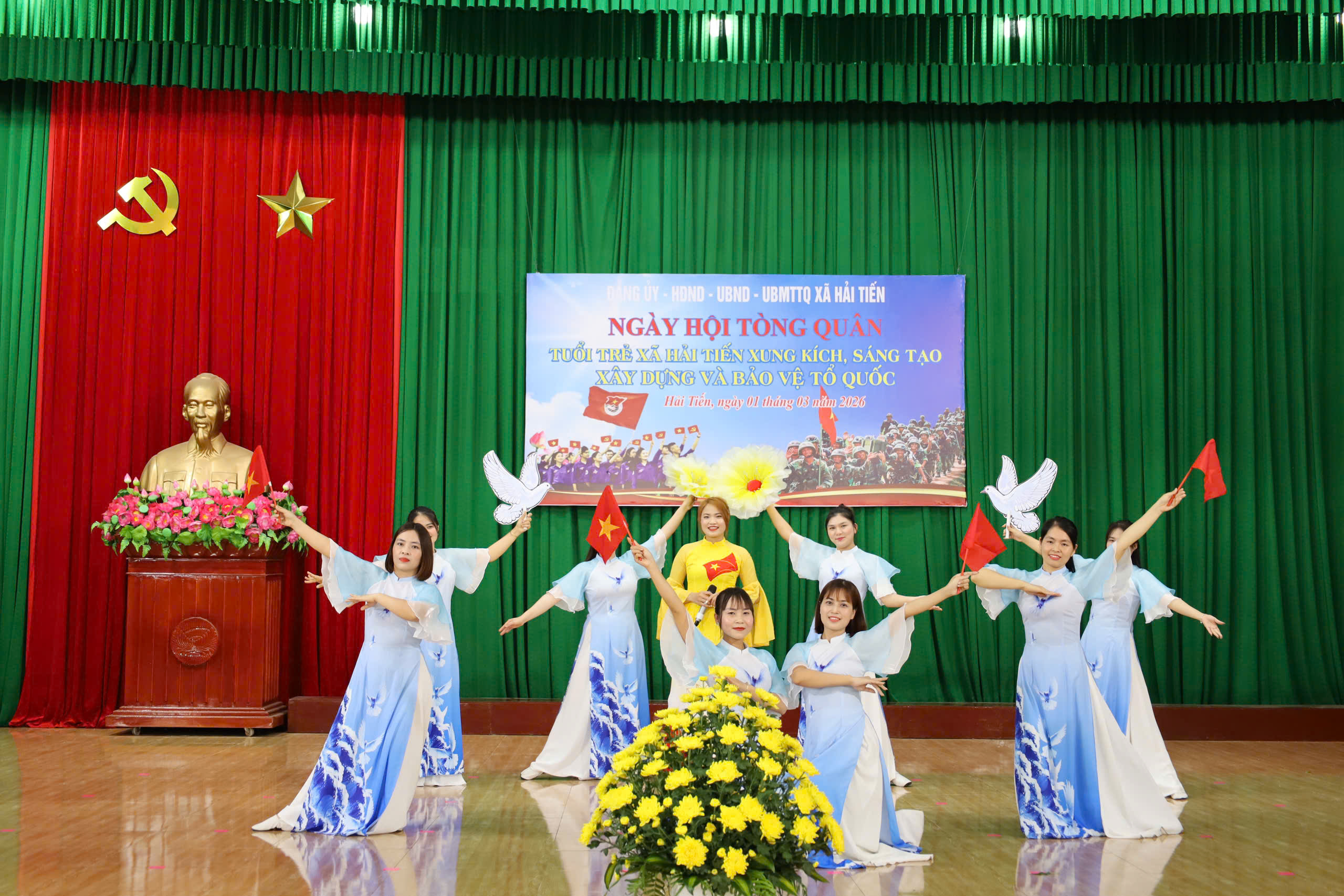 Hòa chung không khí sôi nổi, trang trọng của Ngày hội tòng quân với chủ đề “Tuổi trẻ Hải Tiến xung kích sáng tạo xây dựng và bảo vệ Tổ quốc”, các đồng chí đoàn viên chi đoàn Trường Mầm non Hải Tân đã mang đến chương trình một tiết mục múa hát đầy cảm xúc với ca khúc “Tự nguyện”. Tiết mục được dàn dựng công phu, thể hiện tinh thần nhiệt huyết, lòng yêu nước và niềm tự hào dân tộc. Những giai điệu hào hùng, sâu lắng của bài hát đã lan tỏa thông điệp về trách nhiệm, khát vọng cống hiến của thế hệ trẻ hôm nay đối với quê hương, đất nước