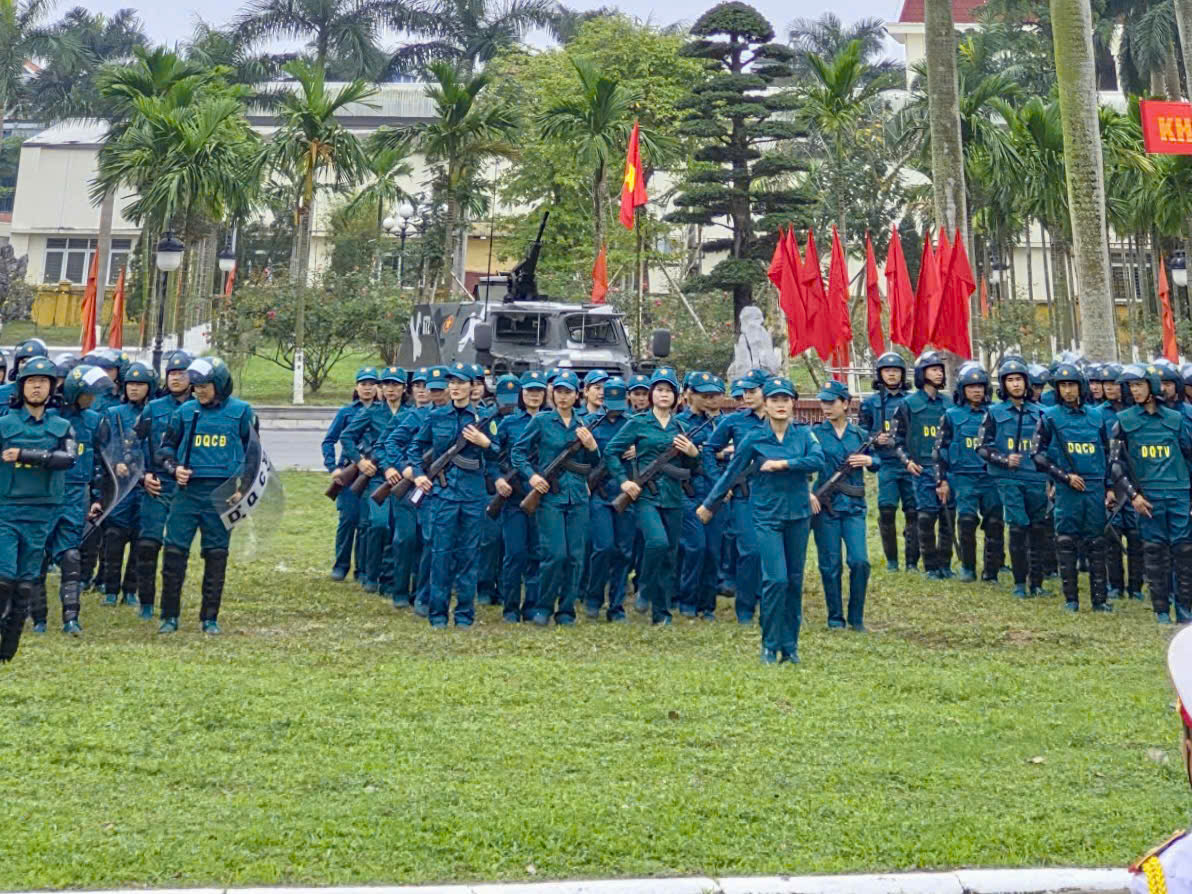 Hình ảnh: Hình ảnh Khối trưởng Đỗ Thị Huyên dẫn đầu khối Nữ dân quân