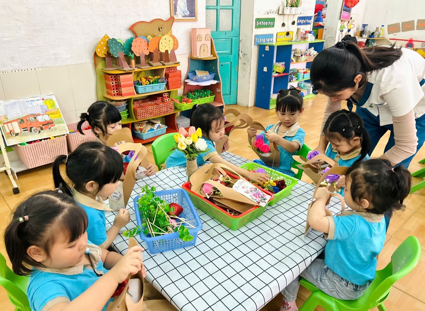 * Hoạt động góc/trải nghiệm: Cắm hoa, làm quà lưu niệm, xem phim về ý nghĩa ngày 8/3
